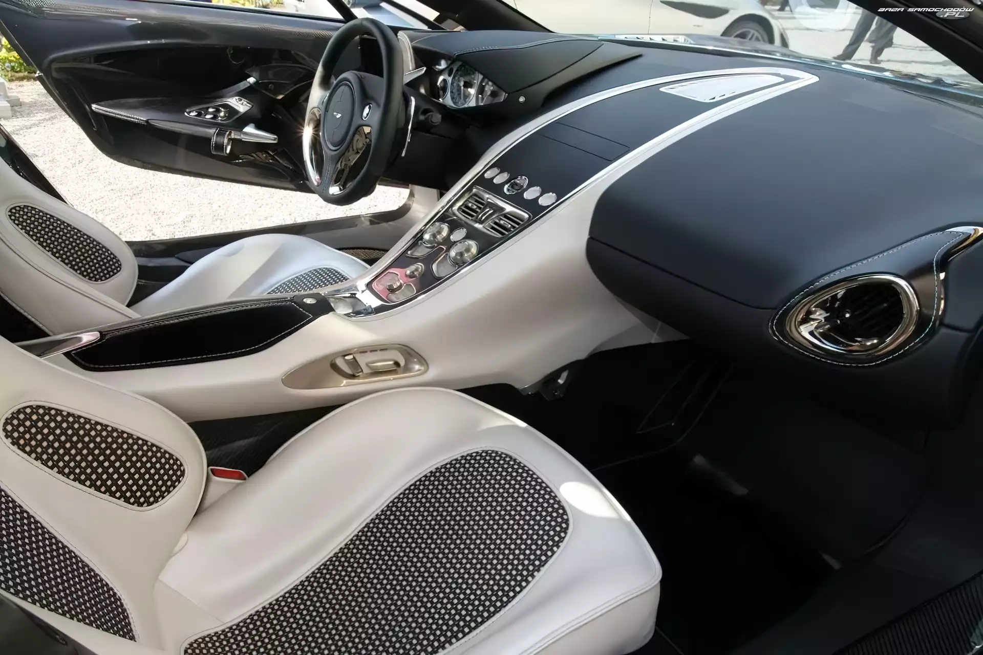 Drzwi, Aston Martin One-77 Aston Martin, One-77 Rama, Aston Martin One-77, Przekrój Przetłoczenie, Aston Martin One-77, Alufelgi Dyfuzor, Tył, Aston Martin One-77 Linia, Bok, Aston Martin One-77 Ciemne, Odbicie, Aston Martin One-77, Lampy Tor, Czarny, Aston Martin One-77 Ulica, Srebrny, Aston Martin One-77 Logo, Aston Martin One-77, Reklama Zderzak, Aston Martin One-77, Atrapa Aston Martin One-77, Kierownica Wystawa, Aston Martin One-77, Prezentacja