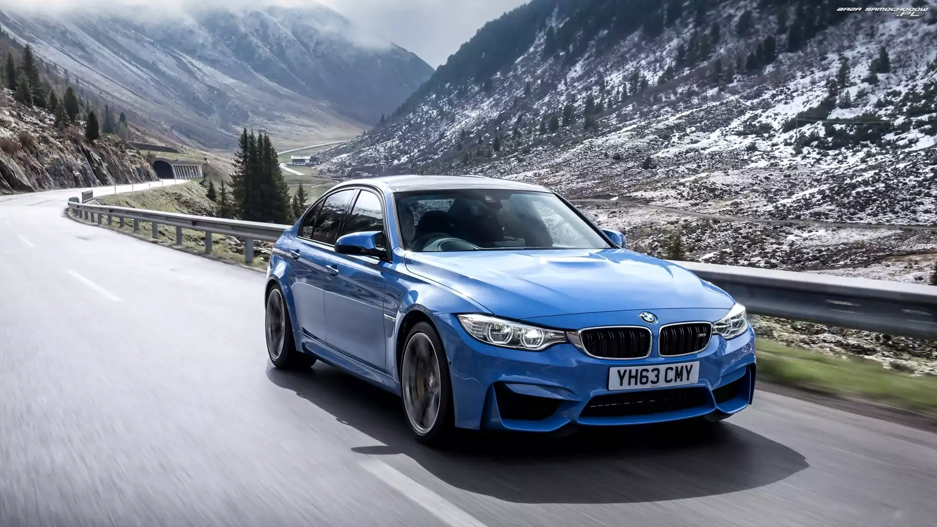 Samochód: Góry, Droga, BMW, Niebieskie, M4