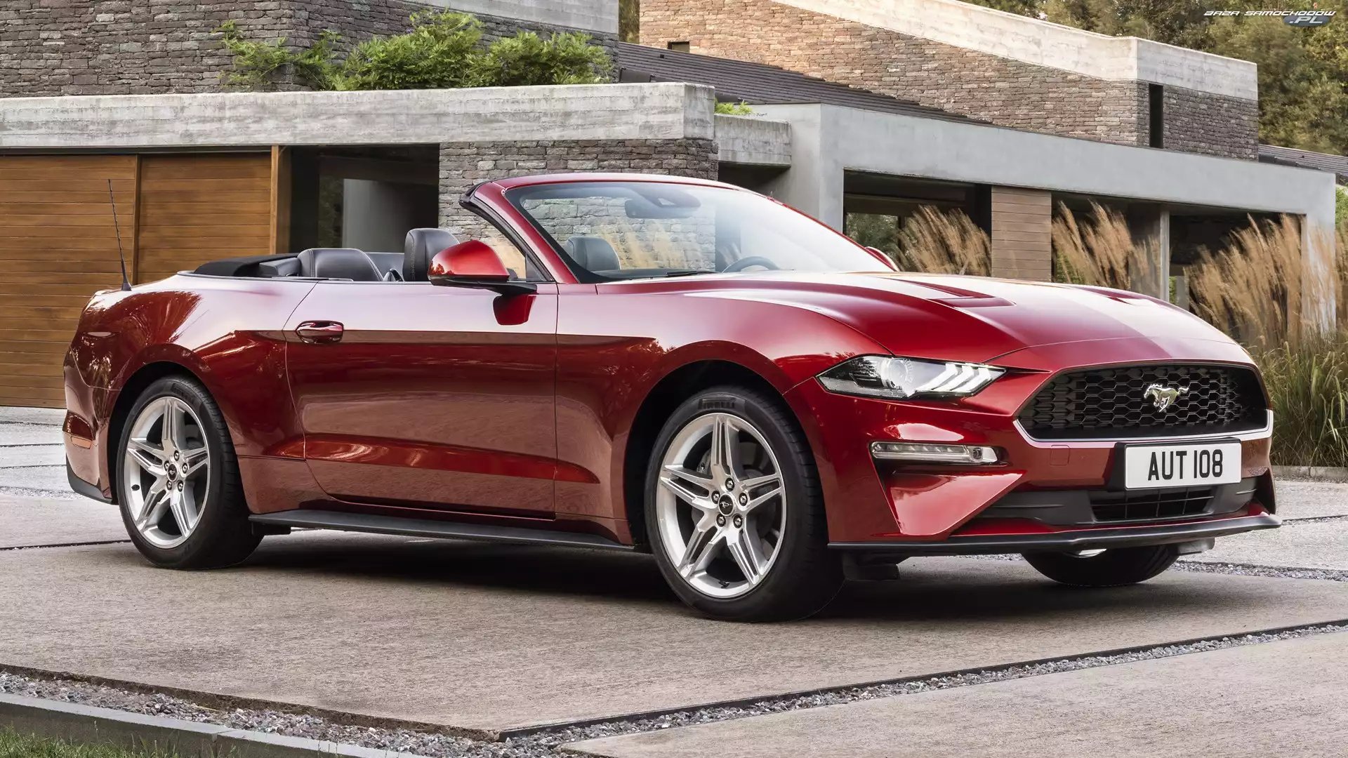 Kabriolet, Wiśniowy, Ford Mustang- Zdjęcia samochodów