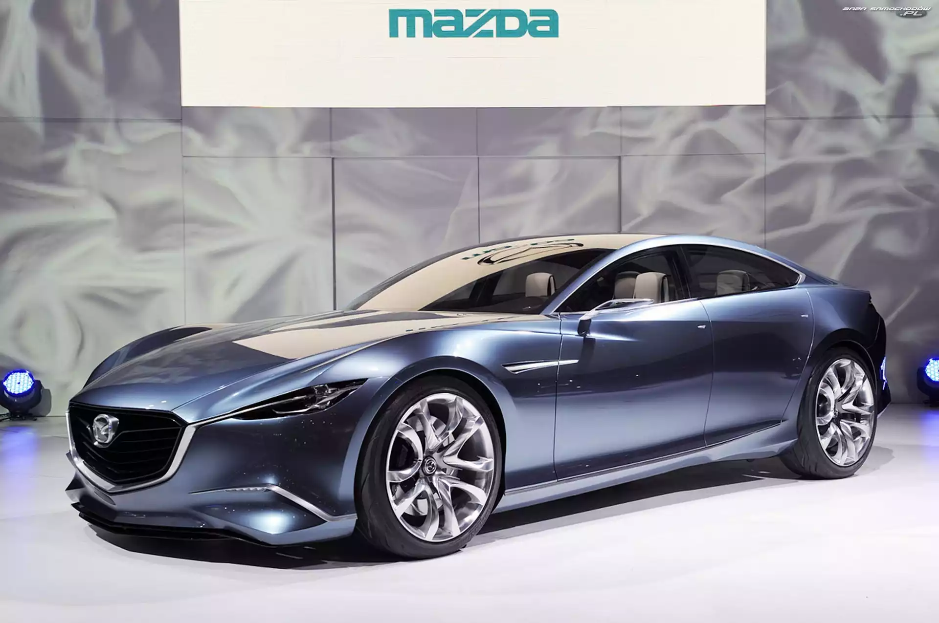 Toyota Hybrid, Prototyp Mazda RX-7 Mazda RX-7, Srebrny Metalik Mazda Furai, Zakręt Mazda, niebieska Zegary, Dodge Challenger, Concept Lewy Profil, Audi Avantissimo Mazda Mazda 6 Drzwi, Citroen Revolte, Otwarte Ksenonowe, Audi Quattro, Reflektory Audi A2, Nowe Spojler, Mazda Furai Citroen C-Metisse, Prototyp